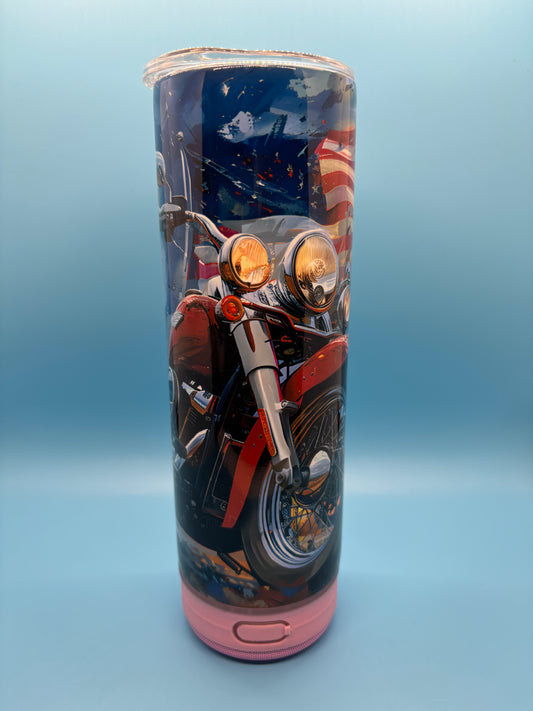 Patriotic Motorcycle 20-Ounce Skinny Stainless Steel Bluetooth Tumbler