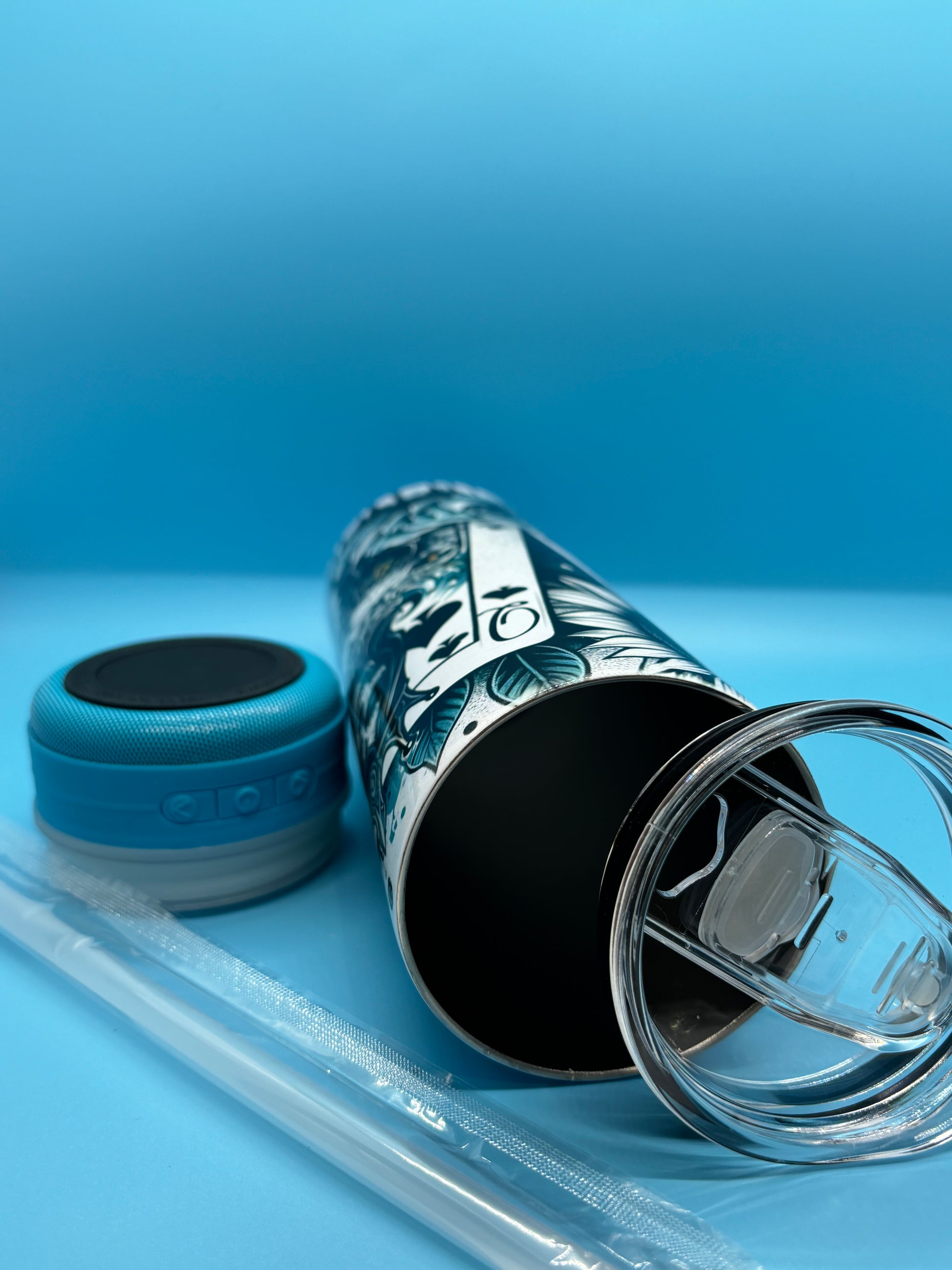 Discover our 20-ounce stainless steel tumbler with a bluetooth speaker featuring exclusive designs. Perfect for hot or cold beverages, this durable and stylish tumbler is crafted for everyday use. It boasts a spill-resistant lid and double-wall insulation to maintain your drink's ideal temperature. Whether at home, work, or on-the-go, our tumbler offers both functionality and fashion.