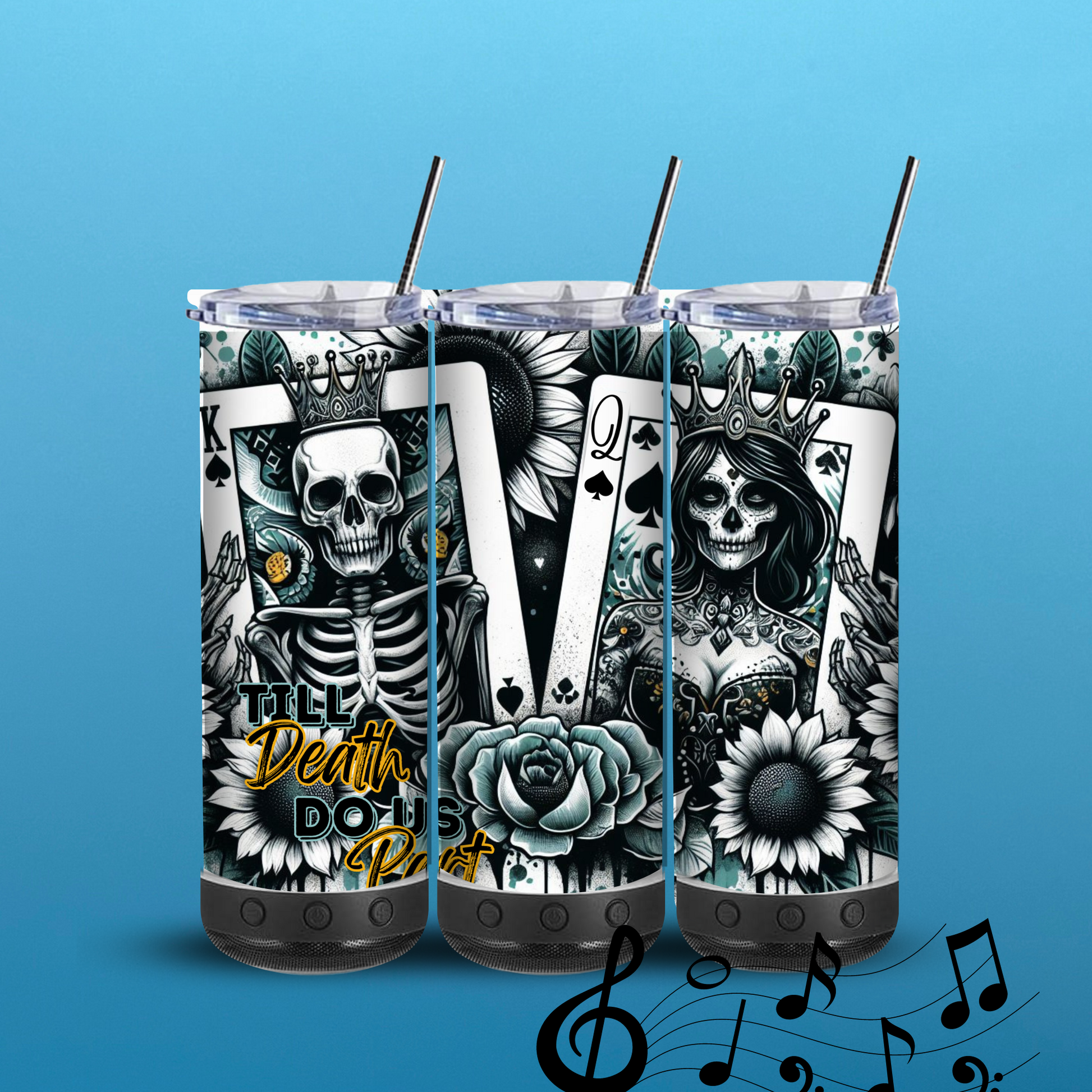 King & Queen 20-Ounce Skinny Stainless Steel Bluetooth Tumbler