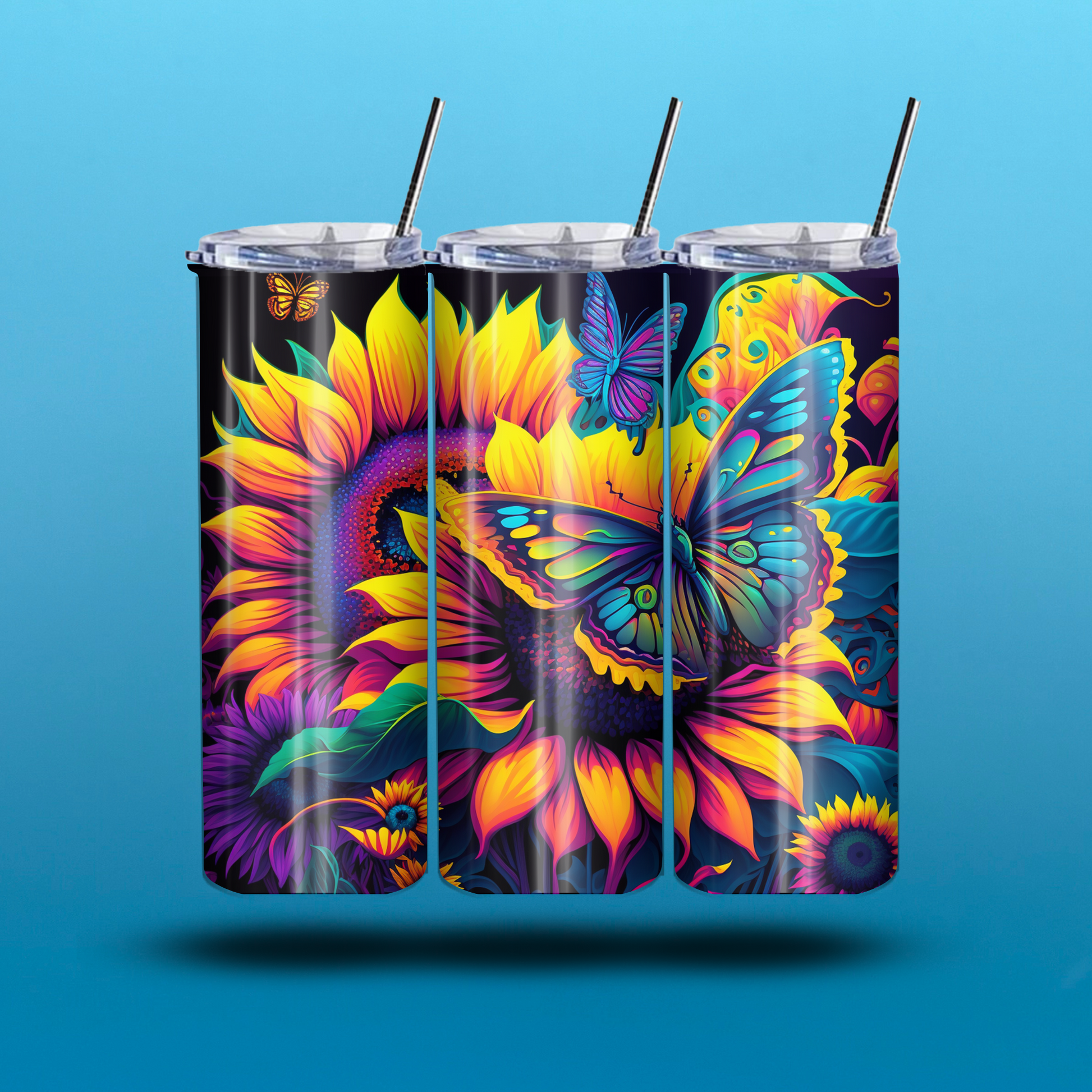 Neon Sunflower 20-Ounce Skinny Stainless Steel Tumbler